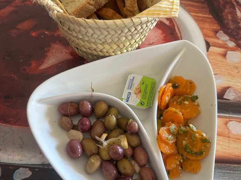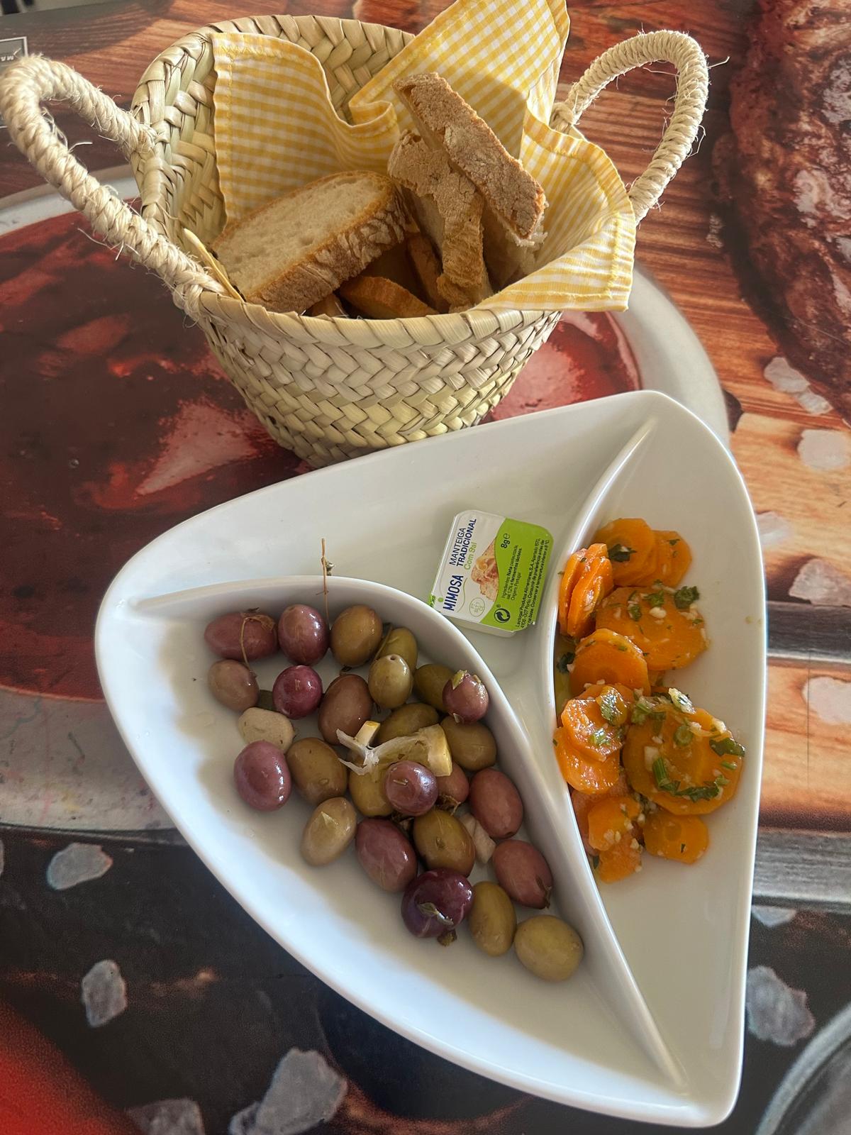 Brot, Butter, Oliven und Karotten