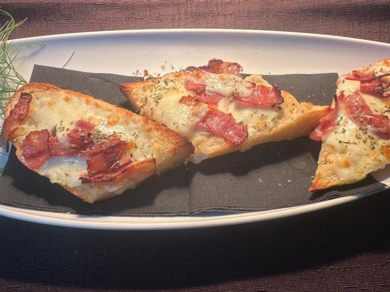 Pão C/ Manteiga de alho, Queijo e Bacon.