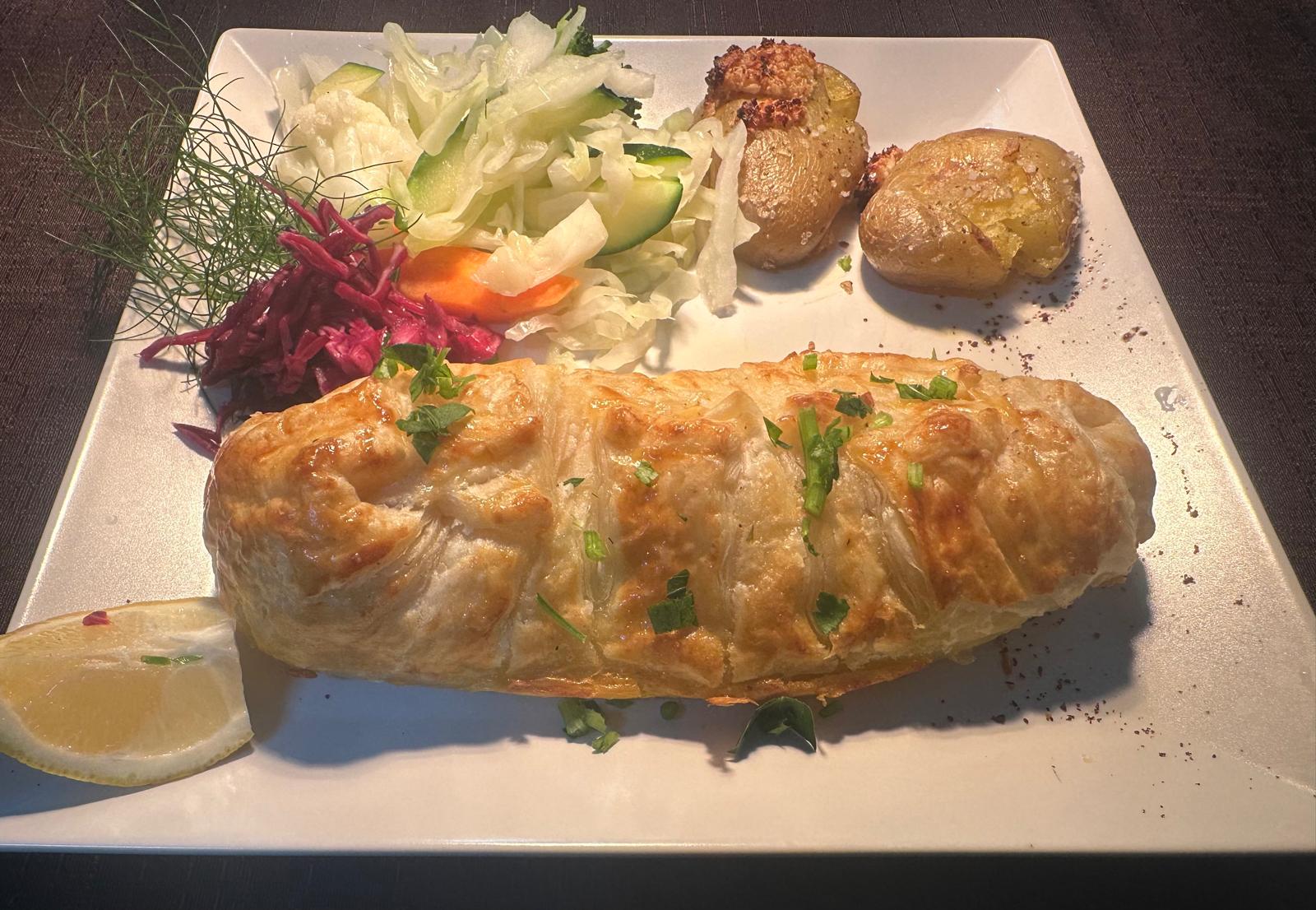 servido com Batata e Legumes