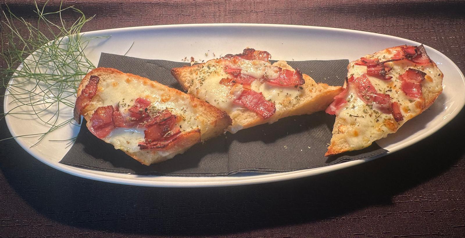 Pão C/ Manteiga de alho, Queijo e Bacon.
