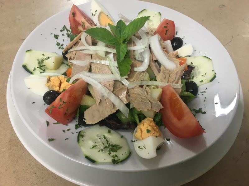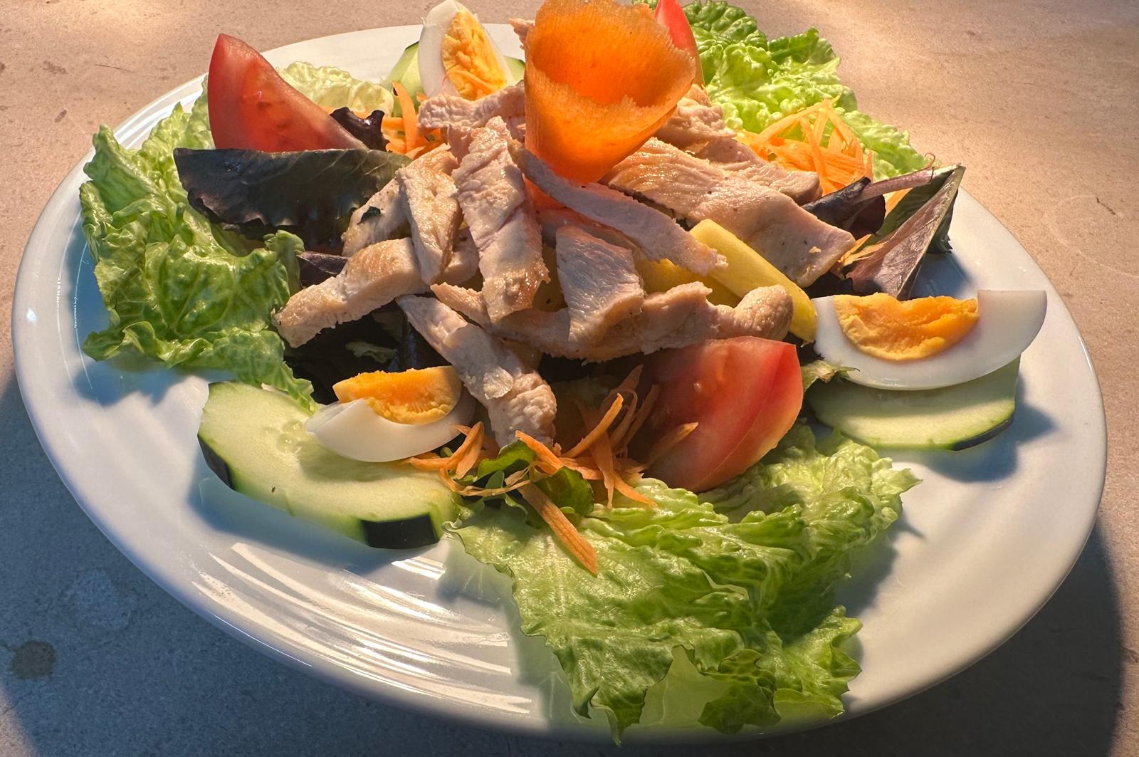 Alface, Tomate, Cenoura, Pepino, Fiambre, Queijo, Ovo Cozido e Azeitonas